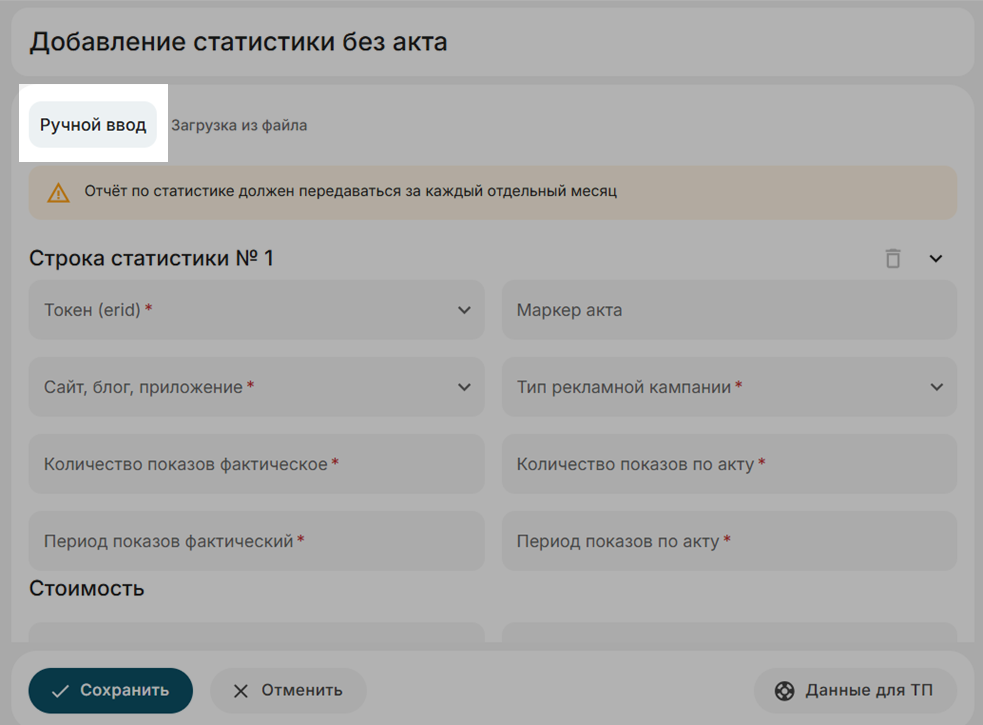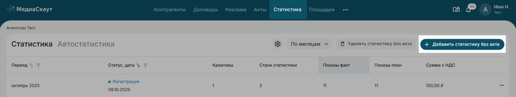 Данный функционал позволит проводить регистрацию статистики по креативам для завершенных рекламных компаний, саморекламы и по длительным актам без создания технических (нулевых) актов каждый месяц.