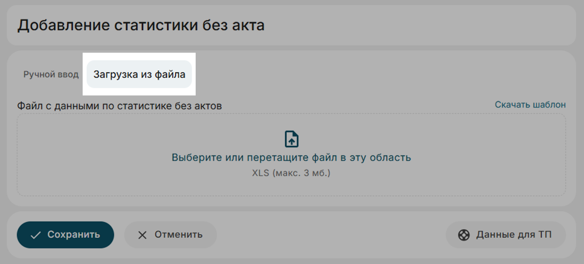 Перейдите на вкладку "Статистика без актов" и нажмите кнопку «Загрузить статистику»: