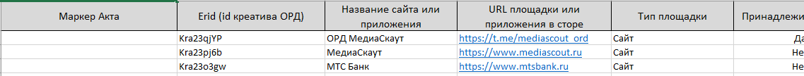 Если вы заполняете строку статистики по креативу, который относится к саморекламе, убедитесь, что публикация такого креатива происходила на вашей площадке, т.е. у площадки проставлен признак "Принадлежит агентству".