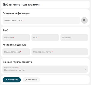 - Заполните данные о пользователе: Фамилия, Имя, Отчество, Номер телефона, Электронную почту пользователя;