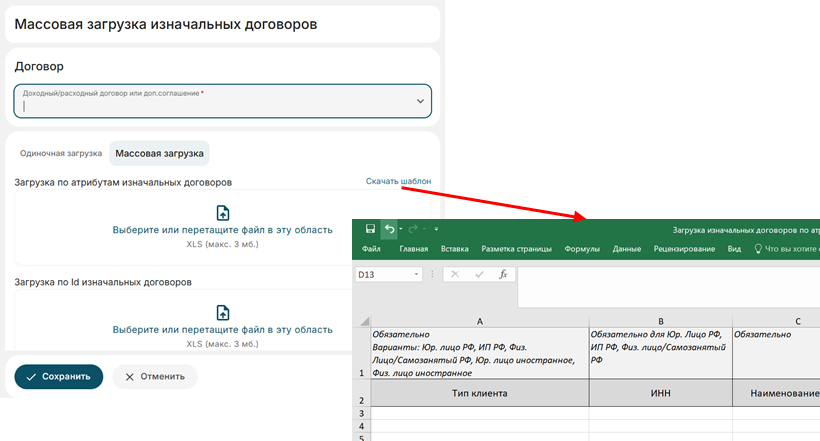 Массовая загрузка изначальных договоров