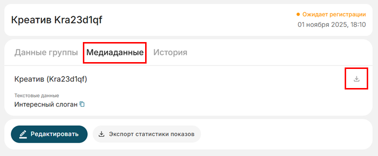 2. Выгрузка из карточки группы креативов: