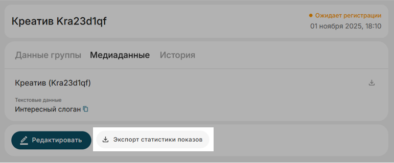 А в карточке креатива можно выгрузить отчёт именно по этому креативу: