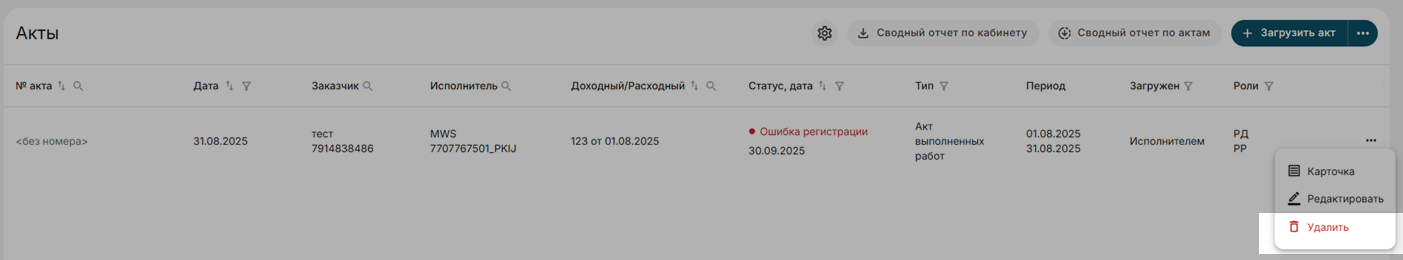 Удаление актов